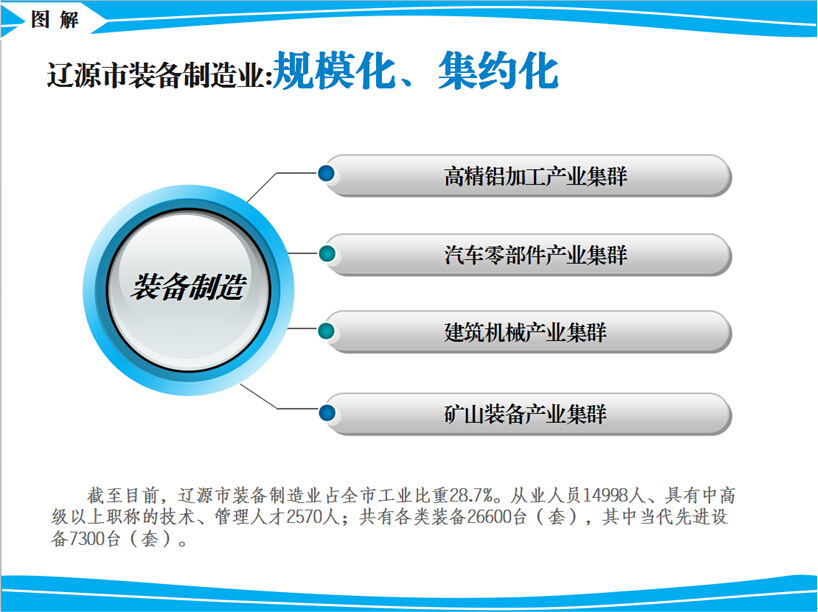遼源市裝備制造業(yè)經(jīng)過(guò)多年的建設(shè)與發(fā)展,現(xiàn)已呈現(xiàn)出產(chǎn)業(yè)集群規(guī)?;?、集約化發(fā)展態(tài)勢(shì)。截至目前,遼源市裝備制造業(yè)占全市工業(yè)比重28.7%。從業(yè)人員14998人、具有中高級(jí)以上職稱的技術(shù)、管理人才2570人;共有各類裝備26600臺(tái)(套),其中當(dāng)代先進(jìn)設(shè)備7300臺(tái)(套)。